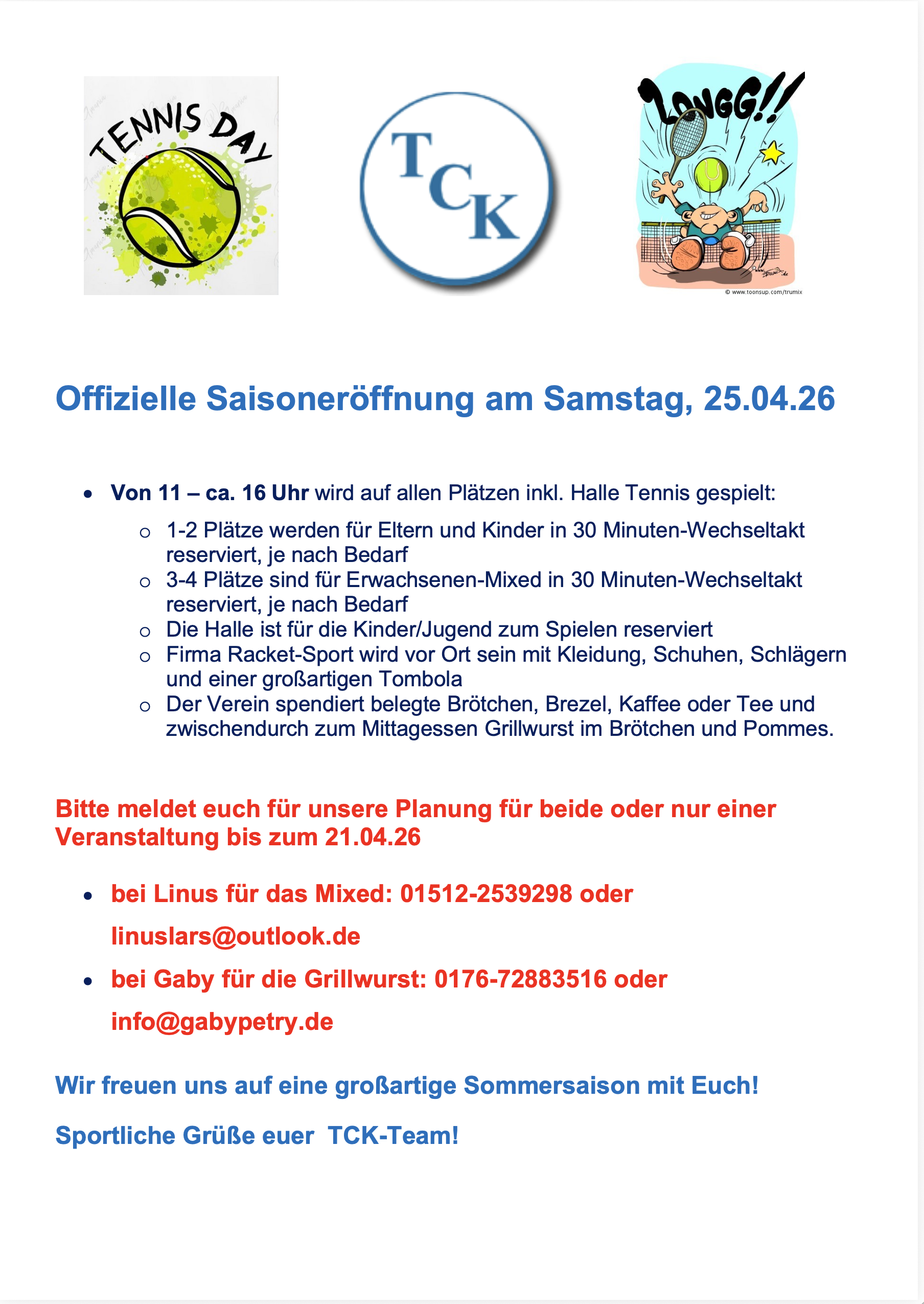 - 12.12.2025 14-18 Uhr Weihnachtsfeier für die TCK Jugende und Jugendversammlung mit der Wahl des Jugendwartes/wartin